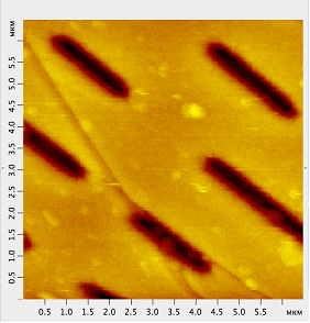 Повторим основные этапы работы на атомно-силовом микроскопе. Вы выбираете образец для исследования и устанавливаете его на столик. Далее с помощью микрометрических винтов производится предварительный, на глаз, выбор области исследования. Далее оператор открывает окно «Резонанс» и дает команду построить резонансную кривую, при построении этой кривой система автоматически выбирает резонансную частоту. После этого оператор открывает следующее окно «Подвод» и под визуальным контролем видеокамеры с увеличением производит подвод зонда к образцу. Основную часть подвода система осуществляет автоматически. Оператор задает амплитуду A0 в виде ее доли от Aрез, например, 0,9. Система мелкими шагами опускает зонд, контролируя на каждом шаге амплитуду колебаний, не уменьшилась ли она до A0. Оператор наблюдает за этим подводом и визуально, и по датчику амплитуды. После окончания подвода оператор переходит в режим сканирования. В этом режиме он выбирает конкретную область сканирования внутри предварительно выбранной относительно большой области 100×100 мкм, выбирает направление сканирования – по X или по Y, шаг и скорость сканирования. После запуска сканирования оператор построчно наблюдает изображение сканируемой области. После окончания измерений программа позволяет произвести математическую обработку результатов, например, сглаживание шумов, представ-