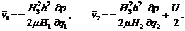 – нормированная на величину зазора координата. Средние по зазору скорости определяются выражениями