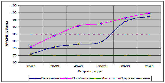 Для объективной оценки тяжести состояния больного использовалась интегральная шкала APACHE III. Была отмечена корреляция показателей по шкале АРАСНЕ III с возрастом, с критериями ССВО и классификацией сепсиса по АССР/SCCM (1992). Картина ССВО при развитии ГСО имела свои особенности у больных на программном гемодиализе. Наличие 2-х критериев ССВО выявлено – у,5%) больных, 3-х критериев – у,2%) больных, наличие всех 4 признаков ССВО отмечено только у 1 (2,3%) больного.