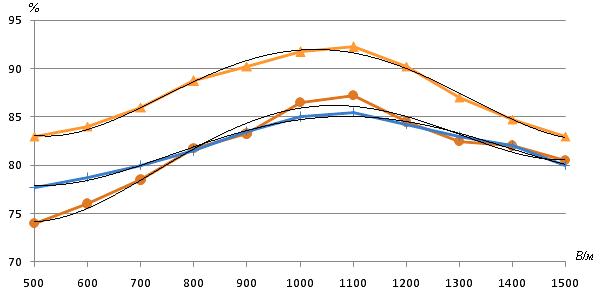 1. Получены наиболее эффективные значения напряженности НЧ электрического поля для рассматриваемых сортов, приближающиеся к