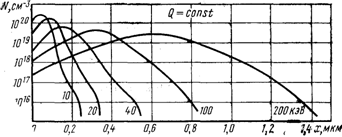 Знак «±» указывают на возможность получения двух переходов на разной глубине, т. е. образования заглубленного (скрытого) слоя. Так, например, при внедрении бора с энергией ионов 160 кэВ и концентрацией Nmax=1018 см-3 в пластину с концентрацией фосфора Nисх=1016 см-3 образуются два перехода на глубине 0,248 и 3,952 мкм. Необходимая при этом доза легирования согласно (2) равна 2,9х1013 см-2. Решение обратной задачи, т. е. определение энергии ионов, необходимой для образования переходов на заданной глубине, может быть выполнено лишь на ЭВМ с помощью итерационных алгоритмов.