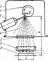 Увеличение давления рабочего газа повышает вероятность столкновения распыленных атомов с молекулами газа, в результате чего часть атомов не приходит на подложку, а рассеивается в объеме камеры или возвращается на мишень. При этом скорости распыления и осаждения падают. Таким же образом влияет на эти параметры увеличение расстояния L от катода до подложки. Минимально допустимое значение L должно несколько превышать ширину темного катодного пространства dК, иначе вероятность ионизирующих столкновений вторичных электронов резко уменьшится и разряд станет нестабильным. В то же время высокая энергия электронов вблизи границы ТКП приводит к тому, что интенсивность бомбардировки поверхности подложки повышается и она разогревается, результатом чего является снижение скорости осаждения, а в ряде случаев - возникновение нежелатель-ных радиационных нарушений поверхностного слоя. На практике расстояние L подбирают экспериментально.