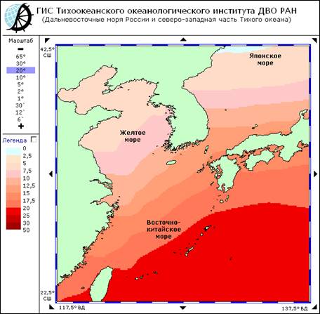 Благодаря деятельности ряда сотрудников ТОИ к настоящему времени все эти данные собраны в едином электронном хранилище. Для эффективной работы с этой базой Лабораторией комплексного анализа океанологической информации была создана специализированная корпоративная океанографическая ГИС, имеющая WEB-интерфейс, и обеспечивающая доступ к базе по локальной сети института и посредством глобальной сети Internet.