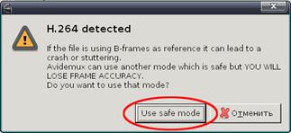 Не вникая в тонкости этого сообщения, нажмите кнопку «Use safe mode». Затем последует запрос на выбор звуковой дорожки (если их несколько):