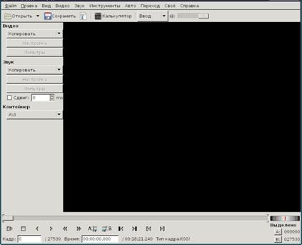 Между тем для нашего проекта нужны отдельные файлы фильмов в формате. avi (Xvid). Получить их можно с помощью видеоредактора VirtualDubMod. После запуска программы ее интерфейс будет выглядеть так: