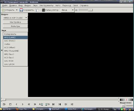 В выпадающем списке выберите «MPEG-4 ASP (Xvid4)». В меню «Звук» нужно выбрать «MP3(LAME)»: