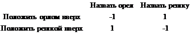 Таким образом, игра «Орел–Решка» формализуется матричной игрой с матрицей