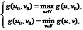 Определение 1. Игра <U,V,g> имеет седловую точку, если существуют число p и стратегии u0ÎU и v0ÎV такие, что