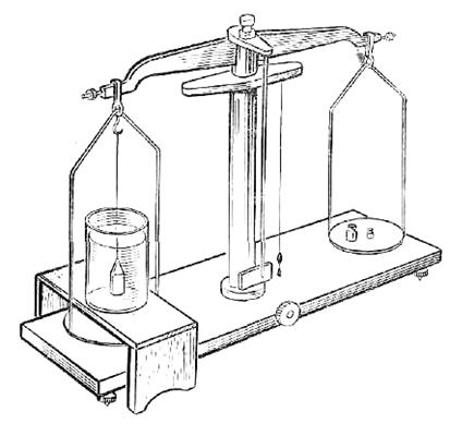 Методы определения плотности: (а) основан на законе Архимеда: путём погружения камня в воду; (б) камень помещают в тяжёлую жидкость: раствор двойного иодида калия и ртути, раствор формиата и таллия (весы Вестфеля).