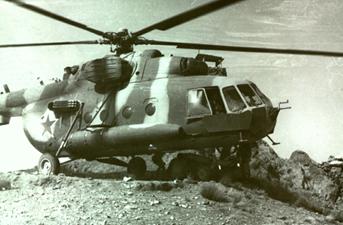 На снимке: вертолет ( борт № го овп, пилотируемый зам. командира полка по летной подготовке майором В. Харитоновым, над аэродромом Кандагар.