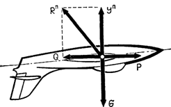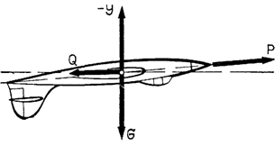 - сила лобового сопротивления Q, направленная назад.