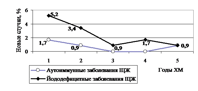 2. В перименопаузальном периоде и в первые пять лет, как после естественной, так и после хирургической менопаузы, частота йододефицитных заболеваний ЩЖ выше, чем частота аутоиммунных тиреопатий.