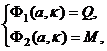 Уравнения (3) относительно пар переменных (a, κ) и (Q, M) определяют одну группу переменных через другую как неявную функцию. Если функции