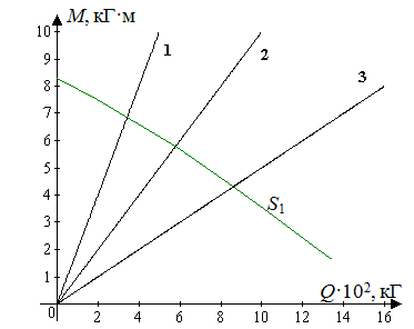Также были рассмотрены пути M = Q и M = Q/2 – прямые 02 и 03 на (рис. 7). Рассчитанные значения нагрузки и параметров состояния представлены в Таблице 1.