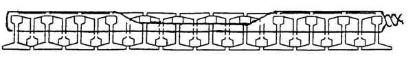 Разрешается увязывать изложницы проволокой диаметром 6 мм в четыре нити порядком, как показано на рисунке 4.6.37. Во все стоечные скобы продольных бортов вставляют, кроме платформ с металлическими бортами и клиновыми запорами, деревянные стойки, которые попарно увязывают проволокой диаметром 6 мм в восемь нитей.
