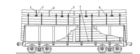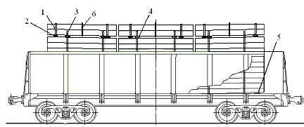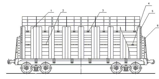 Рисунок 1 – Установка стоек в полувагоне при количестве штабелей 4 и более