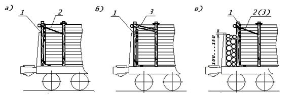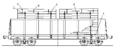 Противоположные боковые стойки должны во всех случаях иметь верхнее скрепление, а при погрузке круглых или полукруглых лесоматериалов на платформы – дополнительно среднее скрепление. Среднее скрепление должно устанавливаться: