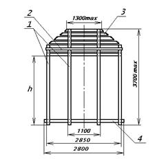 1- боковая стойка; 2- скрепление стоек; 3- увязки «шапки»