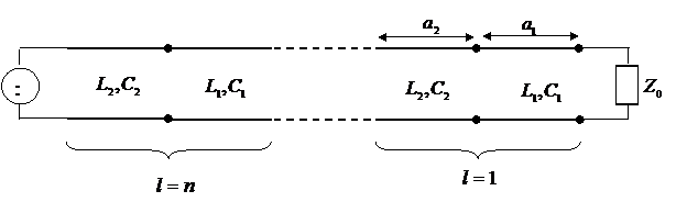 Рис. 13. Кусочно неоднородная длинная линия без затухания,