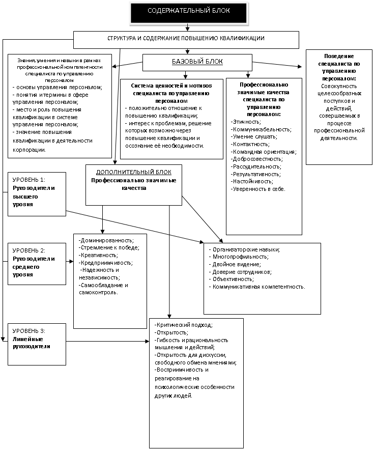 Рис.3. Структура содержательного блока модели повышения квалификации специалиста по управлению персоналом в корпорации