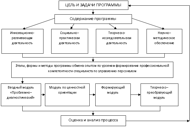 Рис. 4. Организация комплексной целевой программы по обмену опытом в процессе повышения квалификации специалистов по управлению персоналом в корпорации