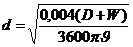 D и W - массовые расходы пара и воды, поступающих в конденсатор, кг/ч; 0,5 — высота, предотвращающая заливание водой штуцера для ввода пара, м.