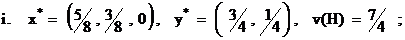 Найти ситуации равновесия в матричной игре H: