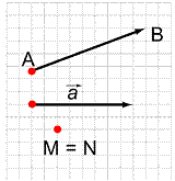 Если начало М и конец N отрезка MN совпадают, то отрезок MN обращается в точку и теряет направление. Пару совпадающих точек M=N также причисляют к векторам. Этот особый вектор называется нулевым (нуль - вектором) и обозначается. На рисунке изображены векторы и ненулевые, а вектор