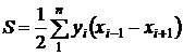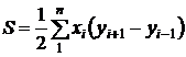 Расчетная формула для определения площади многоугольника (в простейшем случае треугольника – рис. 13):