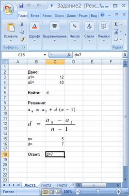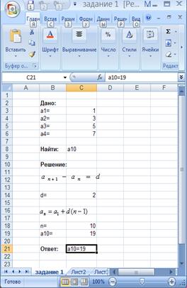 1.2. Решение отдельных заданий на арифметическую прогрессию в Ms Excel 16