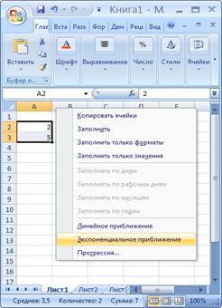 · В группе «Редактирование» раскройте меню кнопки «Заполнить» и в списке команд выберите пункт «Прогрессия» (рис. 3).