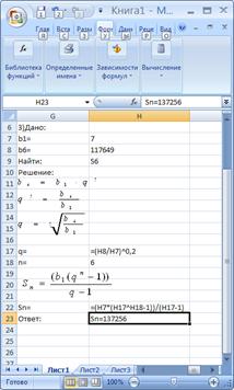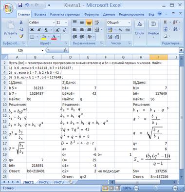 Рис. 11. Решение заданий на геометрическую прогрессию (видны формулы)
