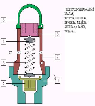 Предохранительный клапан устанавливается после главного резервуара на отводе от трубопровода напорной магистрали.