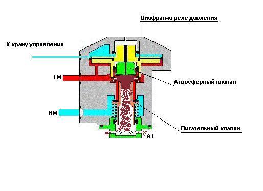 Камера над диафрагмой реле давления.По каналу сообщается с камерой под диафрагмой крана управления.