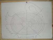 3 | Скопировать рисунок на фанеру, для этого укрепите его кнопками. Обвести шаблон карандашом, стараясь точно придерживаться линии рисунка. |