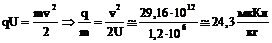 1.5.5. Заряженная частица, пройдя ускоряющую разность потенциалов U = 0,6 МВ, приобрела скорость v = 5,4 Мм/с. Определить удельный заряд частицы (отношение заряда к массе).