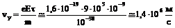 2. Поскольку проекция ускорения на ось ох равна нулю, то горизонтальное движение электрона будет протекать с начальной скоростью v0, т. е. vx = v0, а вертикальная составляющая скорости будет определяться уравнением