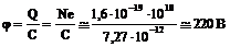 1.7.7. Заряженное проводящее тело сферической формы радиусом R = 2 см обладает электрической энергией W = 1 Дж. Определить потенциал этого тела.