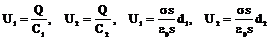 2. Подставим в уравнения (1) значение электрической ёмкости, выраженное через напряжение на обкладках и заряд конденсатора С = Q/U