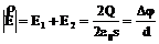 - напряжённость результирующего поля, определяемая в виде суперпозиции полей, создаваемых каждой из пластин.