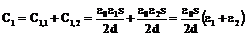 3. При погружении в диэлектрик одной пластины образуется сложная ёмкость, которую можно представить в виде двух последовательно соединённых конденсаторов С2,1 и С2,2