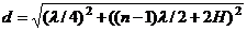 определяются по табл. П18.1, П18.2 (см. Приложение 18). Расстояние между осями вибраторов d и смещение концов плеч вибраторов h кратно половине длине волны, т. е.
