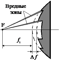 жет быть значительно меньше толщины обычной линзы. Недостаток зонированных линз – появление так называемых "вредных зон" (см. рис. 1.11). Они обусловлены тем, что часть энергии от облучателя падает на ступеньки и отражается к источнику, что ведет к росту боковых лепестков и падению КНД антенны. Зонирование также уменьшает диапазонность антенны, так как ступеньки рассчитываются для определенной длины волны l.