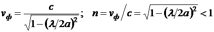 , как бы создают плоские волноводы. Фазовая скорость волны и коэффициент преломления такой среды определяется следующими выражениями: