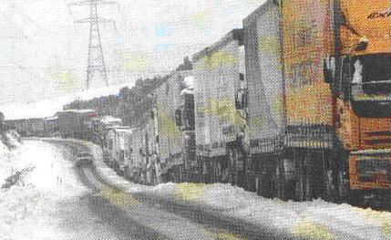 движение на трассах блокируется тяжелыми транзитными грузовиками и малоопытными автолюбителями;