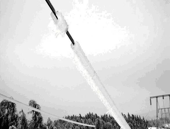 Толщина гололедных отложений порой может достигать многих сантиметров. Под тяжестью образовавшегося льда ломаются ветви деревьев, обрываются провода ЛЭП. Иногда под тяжестью льда разрушаются и стальные опоры ЛЭП.