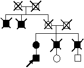 Во всех семейных случаях наследование соответствует митохондриальному (по материнской линии), но почти все родословные демонстрируют неоднократные «пропуски» заболевания, то есть существенно сниженную пенетрантность, особенно у женщин (рис. 3); 16 родословных, где имеются больные мужчины в двух и более поколениях, и нет больных женщин, имитируют Х-сцепленное рецессивное наследование.