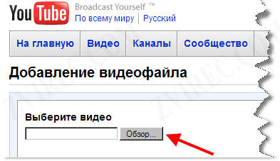 При регистрации возраст указывайте более 18 лет, говорят мол у них там ограничения какие-то. Если не помогло, то попробуйте зарегистрироваться используя другой браузер. Я, например, не смог зарегистрироваться через браузер Opera, а используя Internet Explorer зарегистрировался без проблем.После успешной регистрации, переходим по ссылке Добавить Видео, в правом верхнем углу :