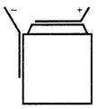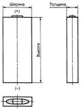 При таком размещении один соединительный вывод должен быть присоединен к крышке аккумулятора (положительный полюс), а другой - к дну корпуса аккумулятора (отрицательный полюс), причем оба вывода должны располагаться параллельно друг другу и быть направлены в противоположные стороны, если иное не установлено потребителем (см. рисунок 3). В этом случае к обозначению аккумулятора добавляют буквы НВ (крышка - дно).