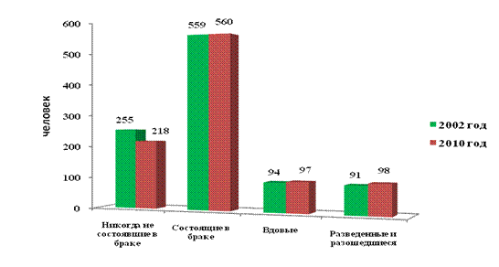 состоящие в браке (зарегистрированном и незарегистрированном) | 602 | 607 | 522 | 520 |